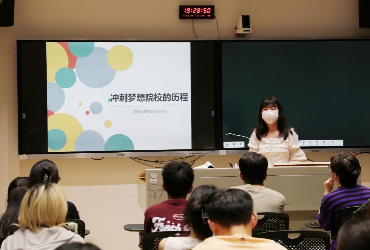 杨童童从前期规划、备考安排等方面向同学们讲解了自己的考研历程。她具体分享了考研英语和考研政治的学习规划与备考经验,提醒同学们一定要结合自身情况制定学习计划。她鼓励同学们,考研的过程的确是煎熬的,一定要做自己心态的稳定器,努力坚持到终点。