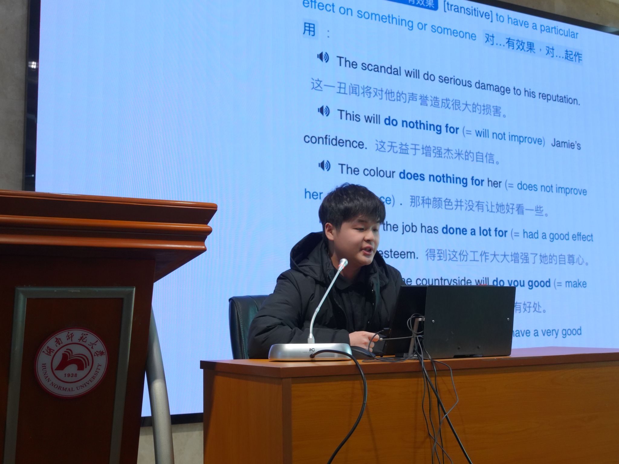 汪子瑞首先强调,在当今要求不断提升我国的国际话语权与文化软实力的新时代背景下,学好一门外语至关重要。为了帮助同学们更好地掌握新时代的外语学习方法,汪子瑞从个人学习经历出发,分享了在实际学习中的一些实用方法。他表示,外语学习是一个循序渐进的过程,需要我们夯实基础、筑牢根基,更加注重单词、语法的积累,以及听说读写的实际运用。