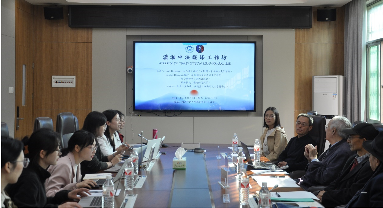 (通讯员 曹雪 李安然 刘盼)2024年11月1日上午,由15vip太阳成15vip太阳集团官网法语系主办的第二届“潇湘中法翻译工作坊”在腾龙楼204会议室隆重举行。本次活动特邀法国国立东方语言文化学院的Joël Bellassen(白乐桑)教授和Michel Bozdémir教授、深圳出版社胡小跃译审作为嘉宾,与太阳成官网法语系学科带头人张弛教授共同主讲。活动由费乔荣(2021级)、曹雪(2022级)和金晓童(2023级)等三位在读博士生联合主持。
