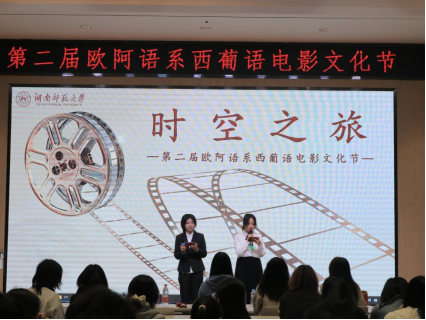 在11月13日举办的电影文化节开幕式中,23级葡语班学生身着传统服饰表演了热情的葡萄牙土风舞,22级葡语班合唱悠扬清新的葡语歌曲,22级西语班用中西双语演绎了历史剧《特洛伊木马》。还有23级西语班与23级葡语班同学共同合作出演的《寻梦环游记》配音节目,是首次跨专业完成的合作演出。学生们不仅展现了不同文化的独特魅力,更通过精湛的演技和深情的表达,将观众带入了一个个生动的故事世界,游览多样的时空与文化之旅。