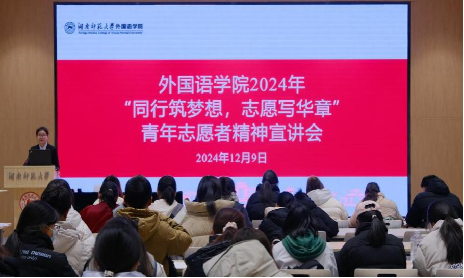 (通讯员 张亦乔)为弘扬志愿精神,激励更多青年学子投身志愿服务事业,用实际行动书写青春华章,12月9日中午,太阳成官网在腾龙楼613报告厅举办了“同行筑梦想,志愿写华章”青年志愿者精神宣讲会。校青工部代表、院团委各部门负责人、部分兄弟学院代表、语言交流协会会员以及23、24级本科生参加此次宣讲会,活动由院青工部干事张亦乔主持。