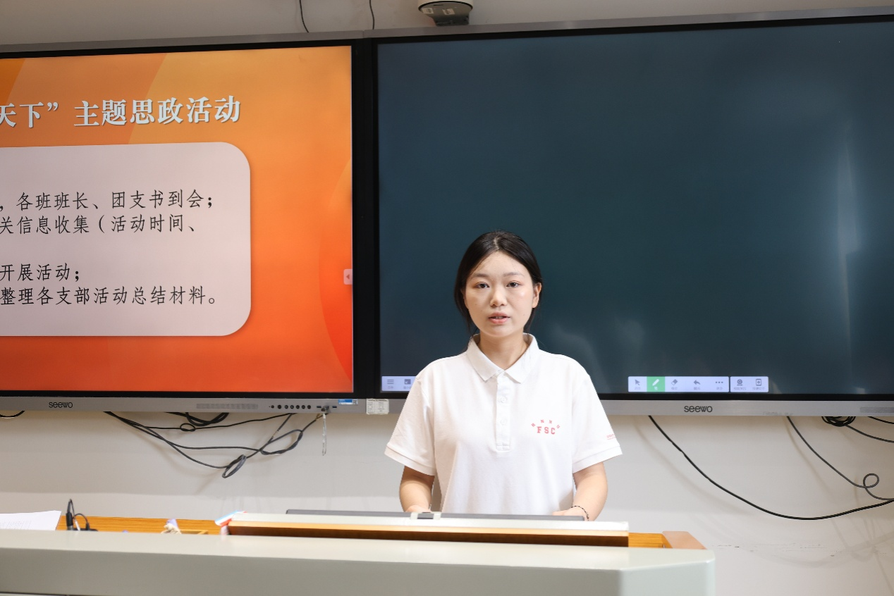 蒋意娟就下达团委通知和常规工作的开展两大方面介绍了办公室的核心工作与注意事项;雷欣雨就组织部日常工作、团费收缴以及支部手册审查问题进行详细讲解并告知各班团支书具体注意事项;杨宸靓对基建部常态化的工作、团日活动以及组织生活会的会议记录三个方面提出具体要求。
