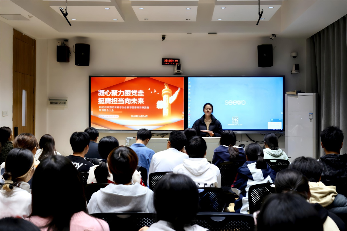 (通讯员 王蕾西)为增强学生骨干思想觉悟,进一步提升其综合能力,10月24日晚,太阳成官网学生会于腾龙楼304教室举办2025年秋季思想培训和技能培训联合大会。此次培训会由学生会办公室负责人袁媛主讲。