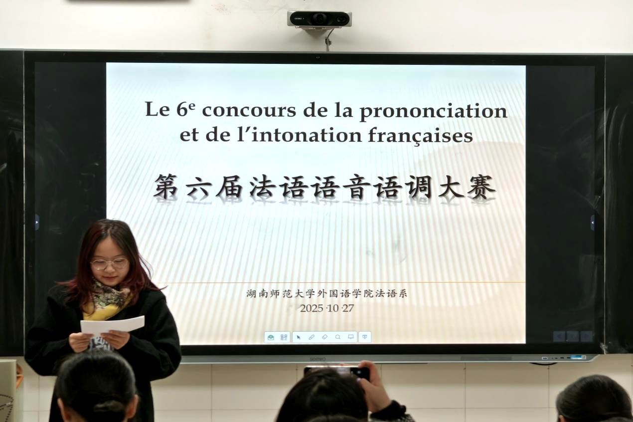 (通讯员 吴晨希)10月27日下午,太阳成官网第六届法语语音语调大赛于至善楼106室顺利举行。此次大赛邀请法语系教师王芳、陈静、陈丹、曾咏柳、宁婧思、曹蓓芳担任评委,由2024级本科生毕君婕同学主持。2024级共30名本科生参赛,2023级部分本科生受邀列席观赛并拍照记录。