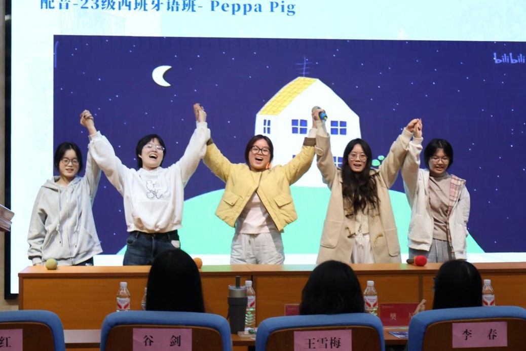 学术分享过后,活动进入轻松愉悦的文艺表演环节。23级葡语班的同学们率先带来合唱《Cidade》,悠扬的葡语歌声勾勒出鲜活的城市记忆,带领观众聆听里斯本街角的动人故事;紧接着,23级西语班的配音节目《小猪佩奇》凭借生动演绎唤醒全场童年回忆,现场欢声笑语不断;最后,24级西语班的大合唱《Miel》以甜美治愈的歌声浸润人心,将现场氛围推向高潮。