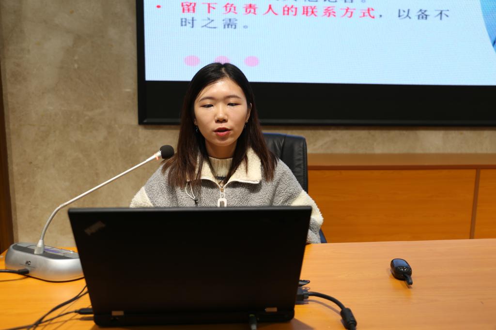常红钰就新闻稿格式、新闻内容、新闻照片、新闻投稿要求及注意事项五个方面进行详细讲解。她强调,新闻投稿必须注意时效性及真实性。同时,她鼓励同学们积极投稿,做好宣传工作,提高外院影响力。