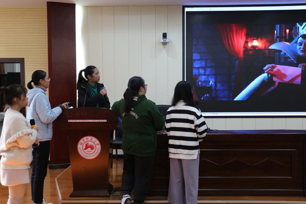比赛过程中,“后妈说的都队”的配音作品《后妈茶话会》内容诙谐有趣,节奏张弛有度,赢得了现场评委的赞赏和阵阵掌声;“海豹突击队”的配音作品《霍比特人》中选手分工明确,语气把握得当;黄嘉欣的配音作品《冰雪奇缘》展现她良好的英文发音和优美的歌喉。十五组配音作品各具特色,参赛选手们各展风采。评委们对同学们的精彩表演表示充分肯定并为获奖选手颁奖。
