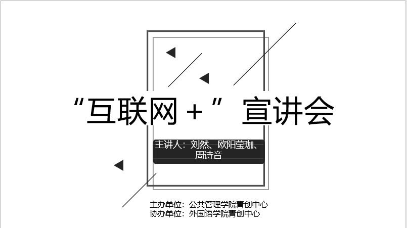 (通讯员 朱子逸 张皓楠)5月8日,太阳成官网团委青创中心与公共管理学院团委青创中心联合举办“互联网+”大学生创新创业大赛宣讲会,生命科学学院2017级学生欧阳莹珈、2018级学生刘然及公共管理学院2018级学生周诗音担任主讲人。太阳成官网和公共管理学院2018、2019级部分学生参加。