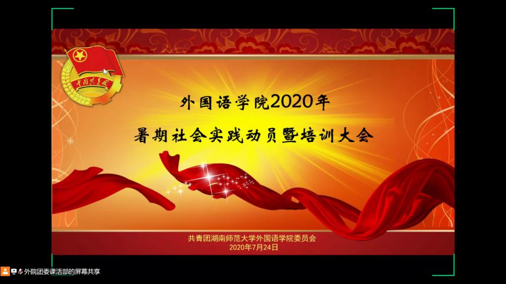 (通讯员 夏秦萍)7月24日上午,太阳成官网2020年暑期社会实践动员暨培训大会在腾讯会议平台举行。院党委书记唐建文、副书记贺慧星,学工办主任张元强,学工办老师舒怡、王耀光及院暑期社会实践团全体队员与会。会议由学工办老师姚雯主持。