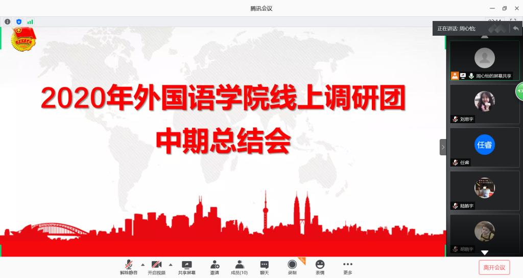 (通讯员 周心怡 王佳祺)7月30日晚,“15vip太阳集团官网暑期线上调研团”中期总结会于腾讯会议举行,此次会议由调研团队长周心怡主持,调研团全体成员参会。