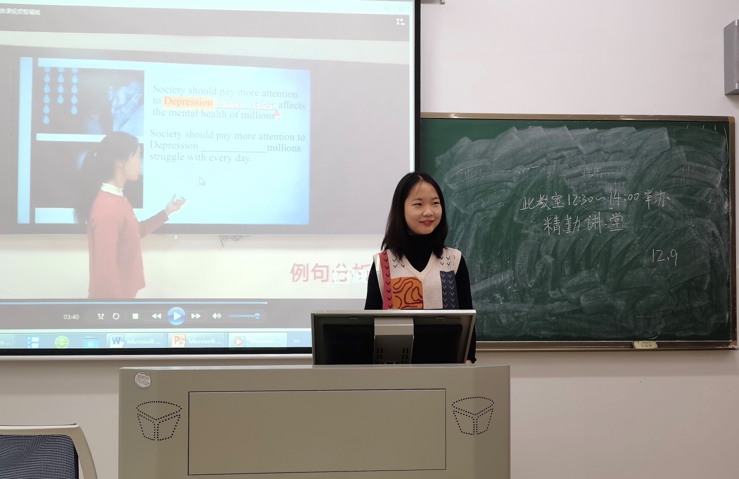 (通讯员 张俊杰 孙伟)12月9日中午,由太阳成官网青创部组织的“精勤讲堂”活动在中和楼214教室举办。2018级学生王佳琪担任主讲人,2018、2019和2020级部分学生参加。此次活动由太阳成官网青创部负责人张俊杰主持。