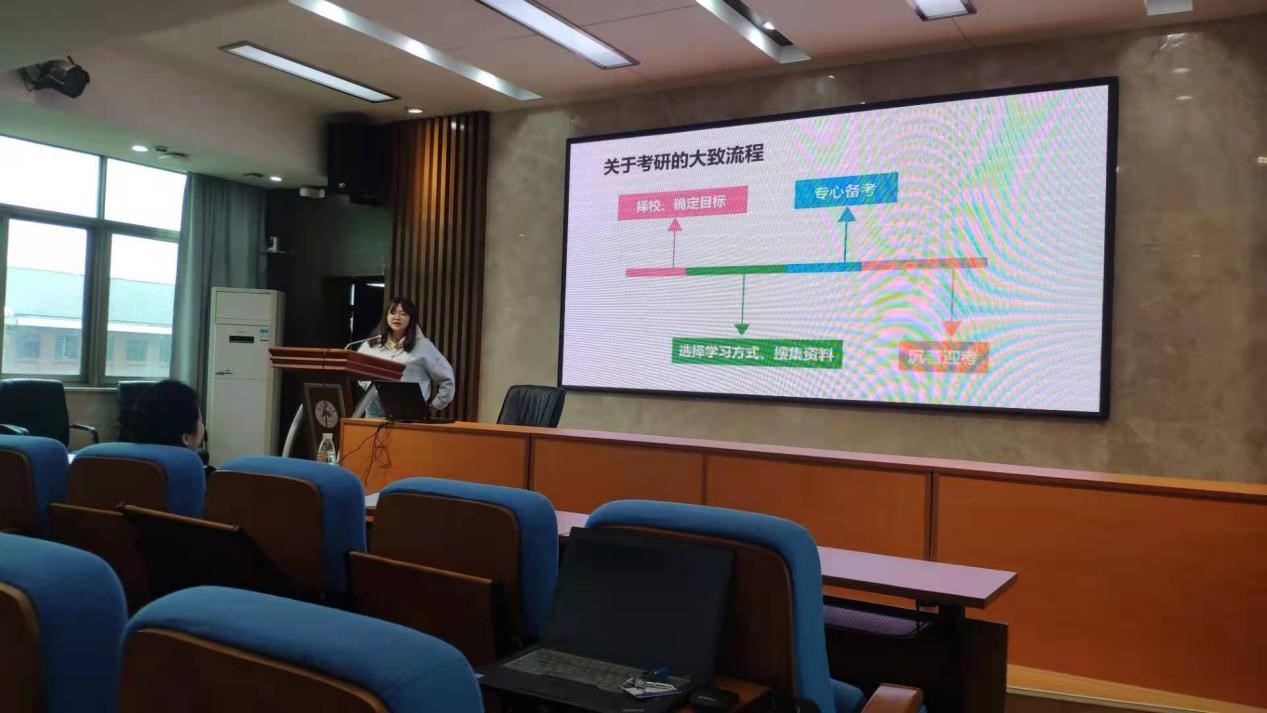 朱汁彬向同学们分享自身的考研计划及心路历程,并有针对性地根据英语学科教学方向的专业课复习过程中产生的问题提出解决方法。她鼓励同学们在备考过程中保持心态积极,对自己充满信心。