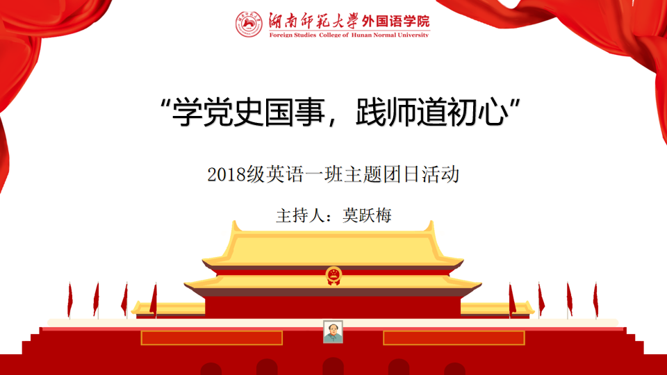 (通讯员 郑如意 张尚文)4月7日中午,2018级英语一班开展了以“学党史国事,践师道初心”为主题的思政学习实践活动。此次活动由太阳成官网英语系万光荣教授担任思政指导员,2018级英语一班团支部全体成员以及八人研究生小组参与活动,活动由团2018级英语一班团支书莫跃梅主持。