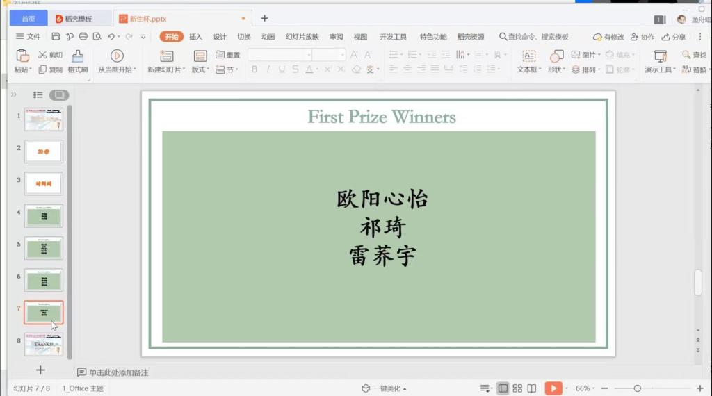 优胜奖:7班申蔚颖7班莫驭钦10班文嘉琪