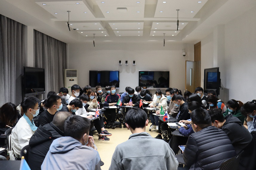 活动伊始,课程学员以小组为单位,仿照联合国形式,在联合国主席的组织下,各组分别代表俄罗斯、中国、美国等九个国家对中东难民安置问题进行陈述和讨论,展现各国的外交立场和理念。
