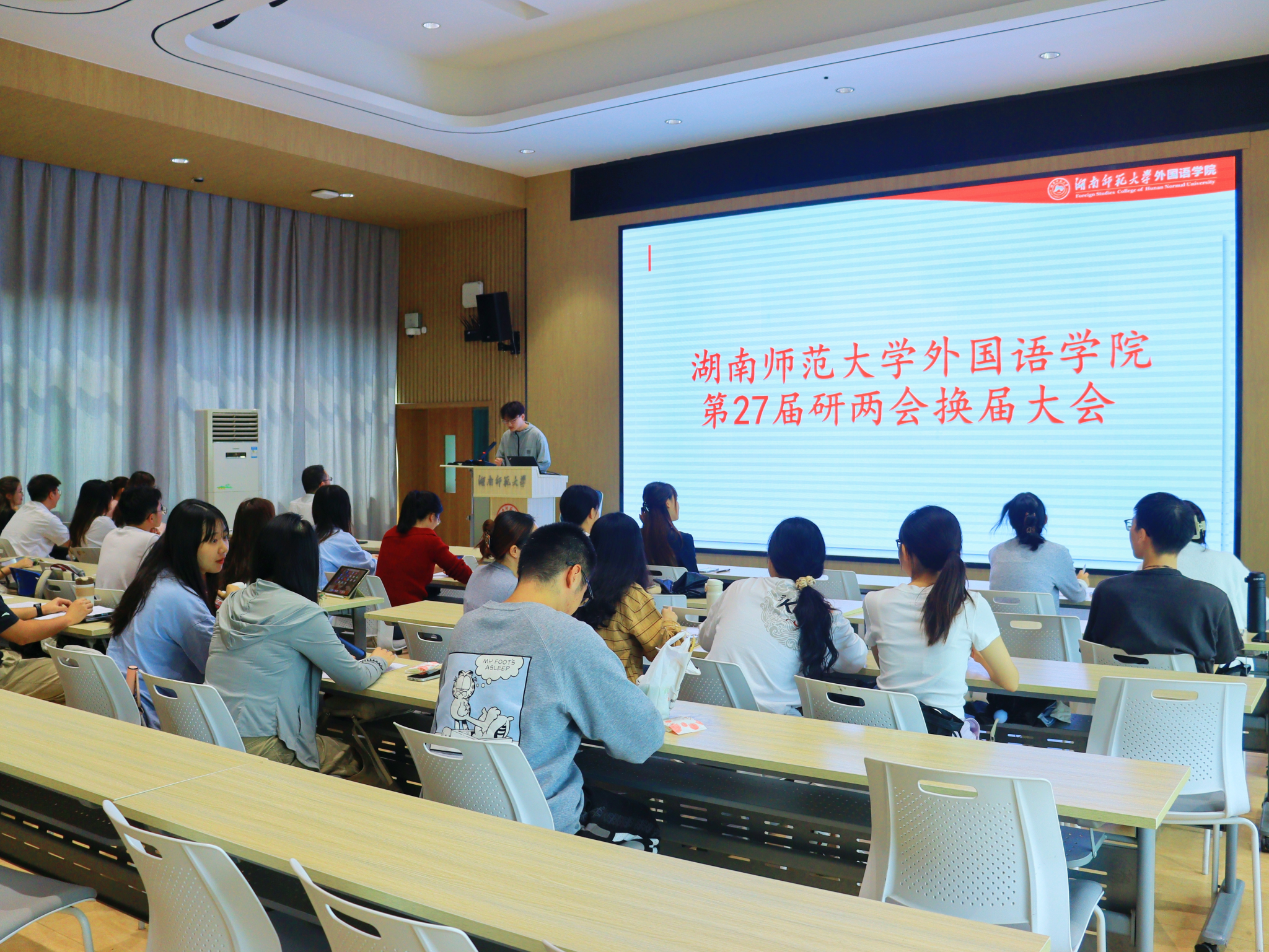 (通讯员:陈淑敏)2024年10月10日,15vip太阳集团官网第27届研两会换届大会在腾龙楼多功能报告厅613教室召开。15vip太阳集团官网副院长梁斌和研究生办公室邓林老师出席大会,第27届研两会成员参与此次大会。