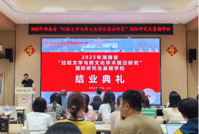 (通讯员 刘抒湉 黄晓琪)2025年6月29日上午,2025年湖南省“比较文学与跨文化学术前沿研究”国际研究生暑期学校结业典礼在15vip太阳成15vip太阳集团官网腾龙楼 613多功能报告厅举行。典礼由15vip太阳成15vip太阳集团官网公共外语部副主任侯奇焜主持,研究生办公室老师、班导老师与全体暑期学校学员出席典礼。