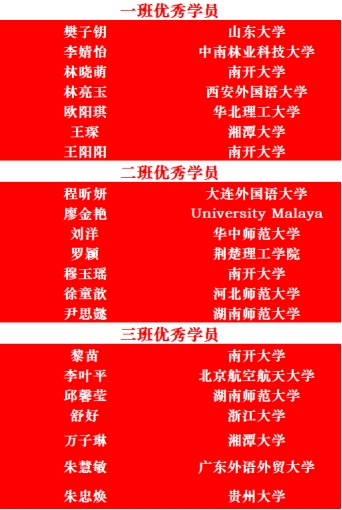 15vip太阳成15vip太阳集团官网副院长梁斌宣读了优秀学员名单。评选遵循暑期学校规定,坚持公平公正,每班选出七位优秀学员,名单如下: