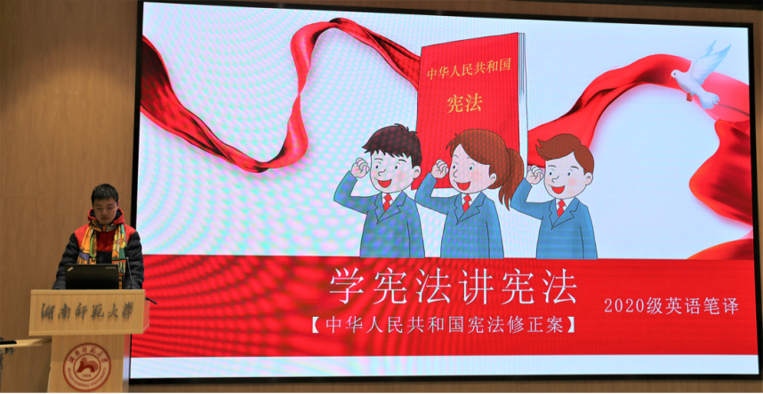 (摄影:李俐 通讯员:曾心媛)为贯彻落实湖南省教育厅《关于开展2020年全省教育系统“宪法宣传周”系列活动的通知》,太阳成官网以加强法制教育、培养法治意识为核心内容,以推动形成宪法教育的长效机制为目标,在校开展宪法教育,以不断培育学习宪法、尊崇宪法的校园法治文化。