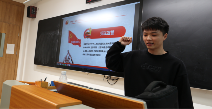 在晨读尾声,主持人呼吁同学们一同宣誓,树立学习宪法、维护宪法的意识,共同为建设社会主义现代化强国而奋斗。
