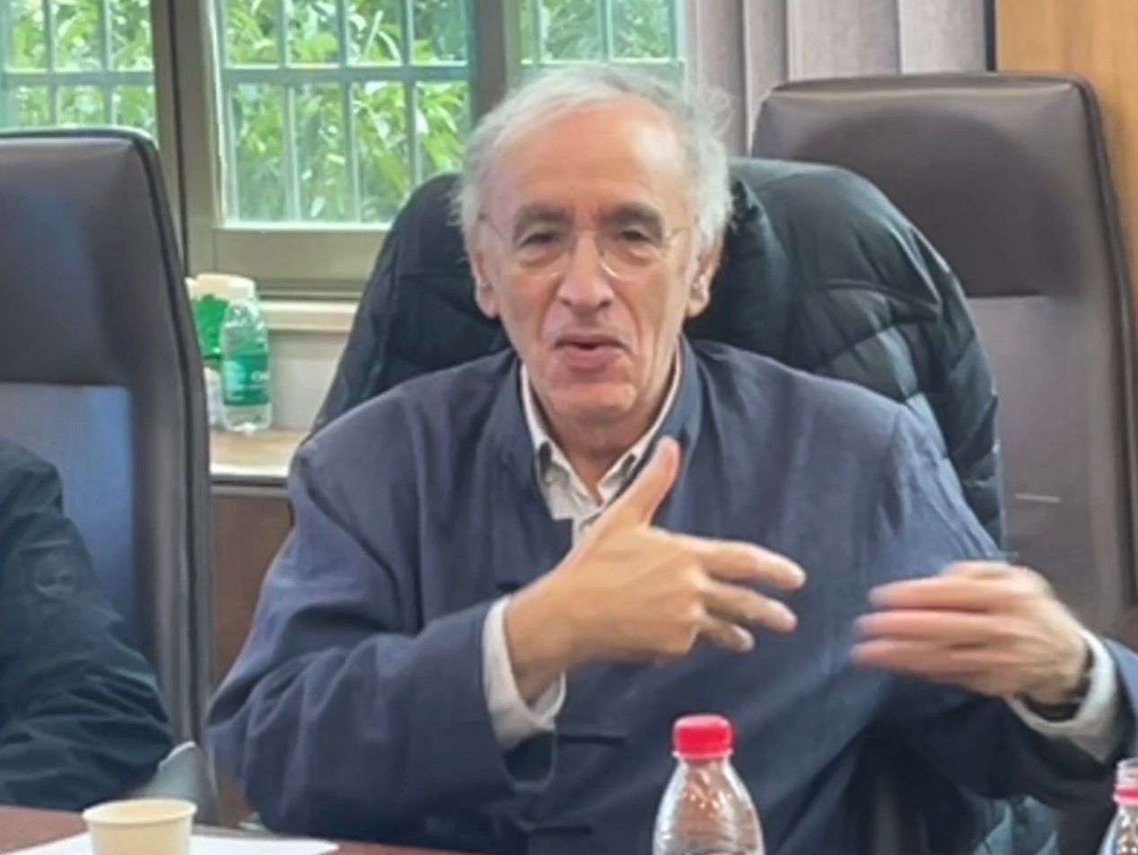 白乐桑教授首先分享了他此次访华的经历,并提到他在北师大学术交流活动中与德国汉学家顾彬(Wolfgang Kubin)教授交流了一些学术问题。在交流中,白乐桑教授向顾彬教授介绍了即将举办的潇湘中法翻译论坛,引起了顾彬教授的兴趣,可惜他因日程紧张无法参会。白老师随后表达了对再次访问15vip太阳成的喜悦与期待,并表示希望能与吴泓缈教授、张弛教授和方丽平副教授一起讨论感兴趣的问题。他鼓励同学们关注热门话题,因为这不仅代表学术上的热点问题,也意味着学术领域可能存在的研究空白。
