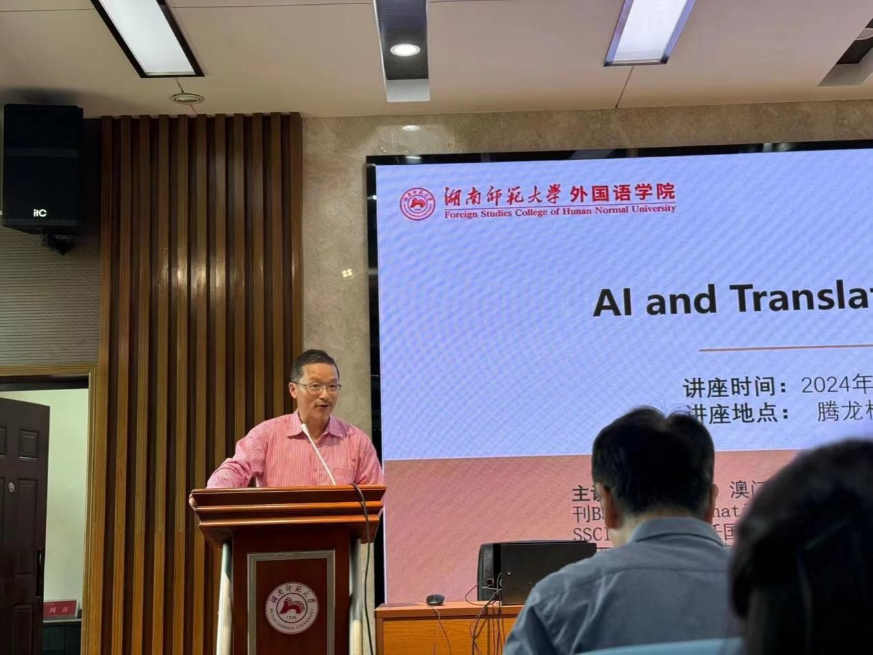 2024年5月16日上午,澳门大学孙艺风教授莅临太阳成官网,在腾龙楼515会议室为太阳成官网师生带来了一场题为“人工智能与翻译学”(AI and Translation Studies)的学术讲座。本次讲座由太阳成官网曹波教授主持,吸引了15vip太阳集团官网众多师生踊跃参与。