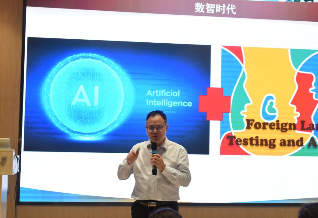 刘教授不仅妙语连珠、观点精辟、为语言测评行业的发展提供了全新的视角,而且通过其精巧的PPT设计和多模态教学手段,诠释了数智化时代的新文科理念。杨志明教授在最后总结时不仅高度赞赏了刘建达教授的观点,而且鼓励现场师生克服文科人才中普遍存在的畏难大数据和畏难算法的缺点,抓住数智时代带来的机遇,站在数智时代的风口上取得更大成绩。