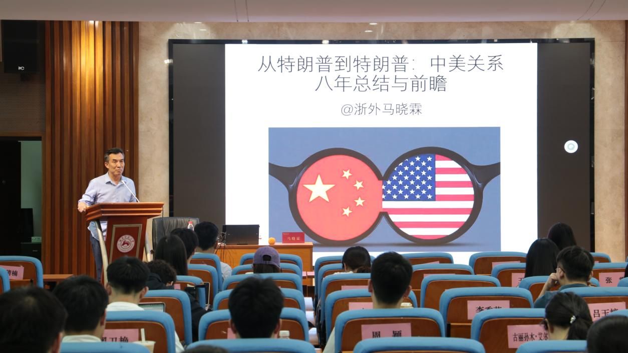 讲座中,马晓霖教授还结合历史脉络分析中美关系演变。特朗普第一任期内,双方从“大盘稳定”走向“全面崩盘”,经贸、科技、军事等领域对抗加剧;特朗普第二阶段调整策略,降低遏华调门,寻求有限合作;拜登政府时期,中美关系“止跌回升”,通过旧金山峰会等机制达成20多项共识,但科技竞争、台海问题等仍存风险。他指出,中美关系具有“全局性、战略性、复杂性”,未来需通过扩大“正面清单”(如全球治理合作)、压缩“负面清单”(如技术封锁)实现稳定。