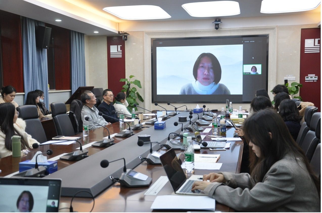 在自由发言环节中,车琳教授向线上线下的师生介绍了北京外国语大学法语学院的学科建设和硕博研究生的培养现状,还详细说明了北外学术期刊《法语国家与地区研究》的投稿审核流程。随后,法语系师生积极向车教授提问,展开互动交流。他们的问题涵盖了多方面,包括博士论文选题、论文投稿发表以及学术研究对象选择等。车教授亲切耐心地一一回答了上述问题。