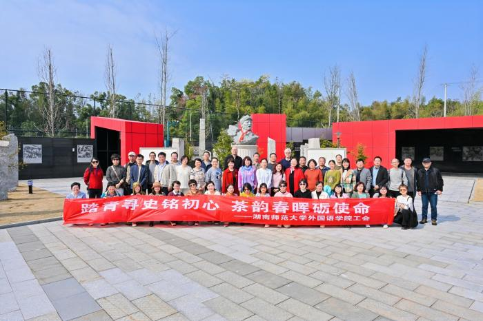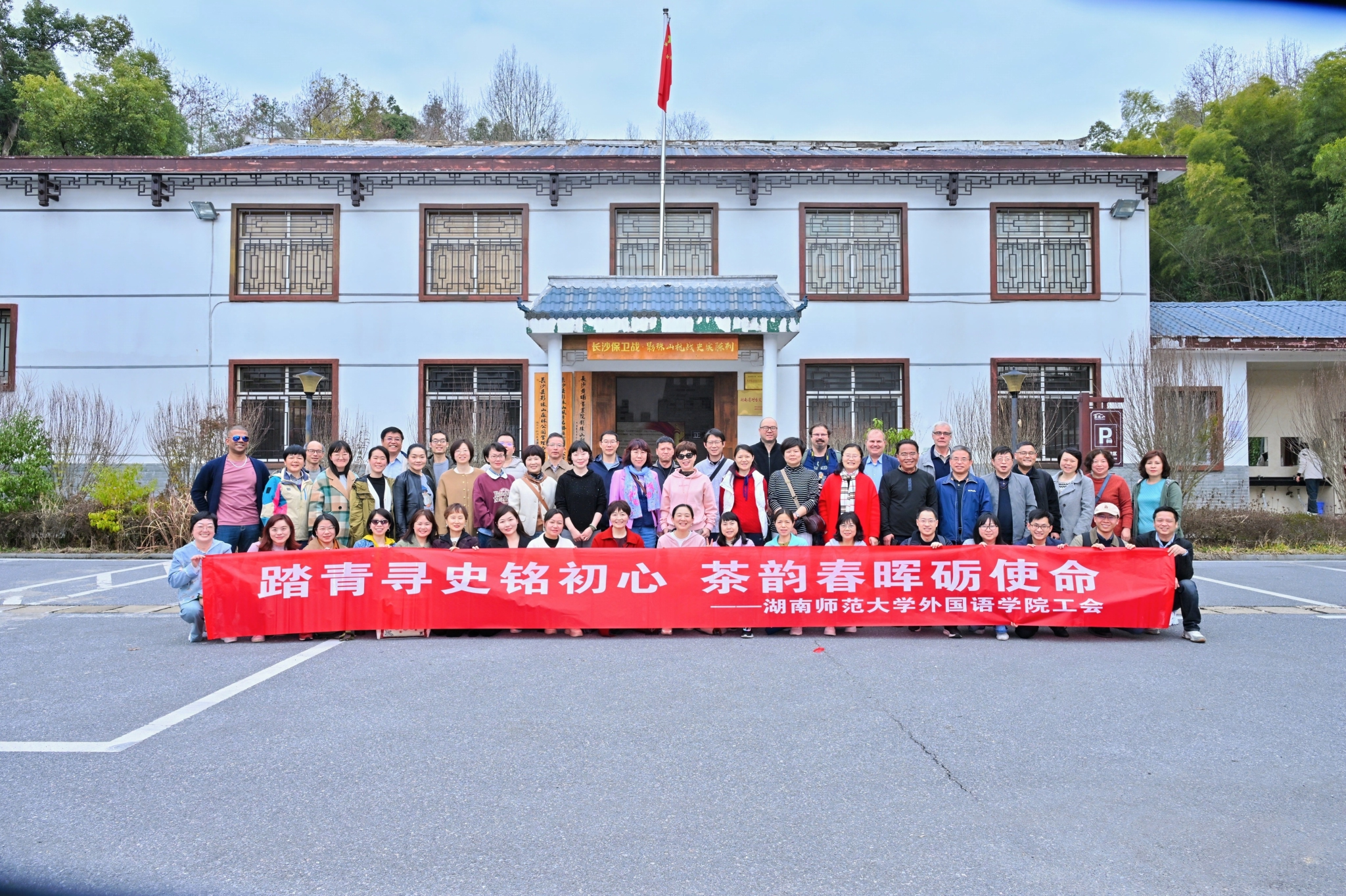午后,大家前往湘丰茶博园,漫步在万亩茶田之间,碧水、绿树、青山交相辉映,亲身感受到了山里人家如画一般的田园生活。金井绿茶千年飘香,素有“世外长沙、绿茶天堂”的美誉,大家在茶香中放松身心,享受春日的美好时光。在茶博园的活动中,学院工会还特别设置了现场抢答赛环节,题目内容与影珠山抗战史实和陈树湘烈士事迹密切相关。大家踊跃参与,现场气氛热烈。尤其是几位外籍教师积极抢答,展现了浓厚的学习兴趣和对中国文化的尊重。这一环节不仅加深了大家对红色历史的记忆,也促进了中外教师之间的交流与互动。