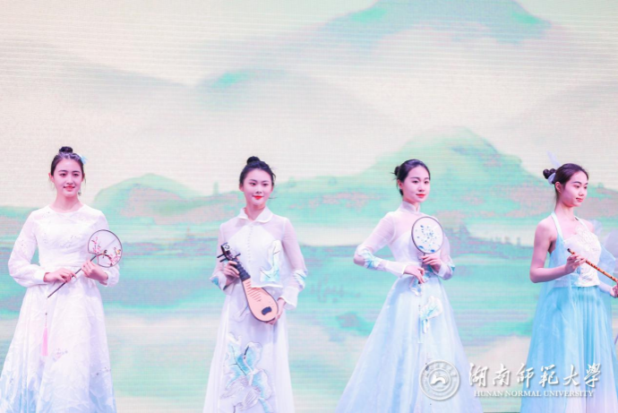 湖南非物质文化遗产服饰秀《书绣青墨》用时尚激活传统,呈现传统工艺与创意设计碰撞产生的火花,展示了韵味醇厚的中国服饰古典之美。