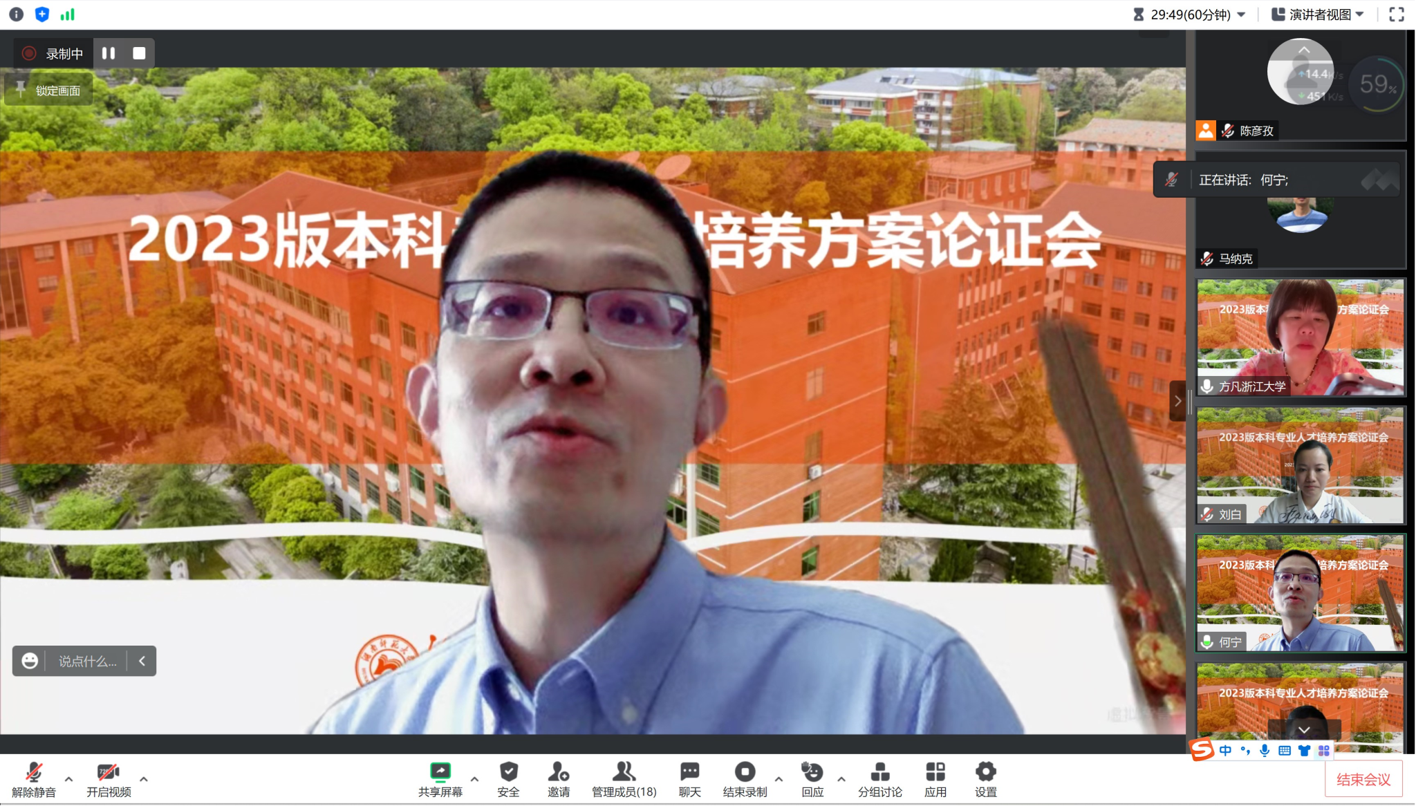在讨论环节,各专业负责人踊跃发言。就双学位管理、实习实践、学分设置、培养目标凝练等问题进行了热烈的讨论,对人才培养方案的修订意见也达成了共识。最后,刘白教授对本次论证会进行了总结,感谢了专家们的宝贵建议,希望各专业在接下来修订中注重统一性、细节性、规范性,同时未来要凝练专业特色。