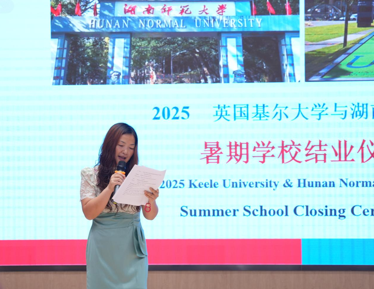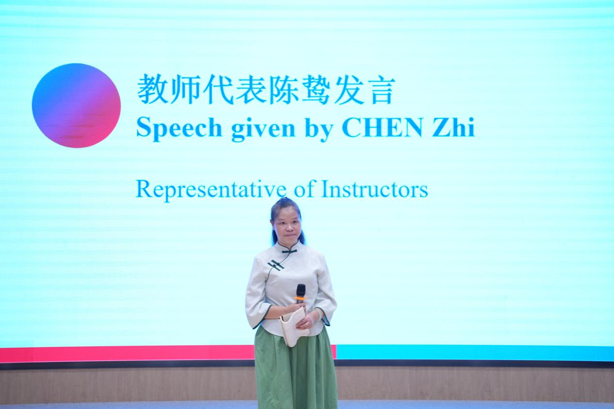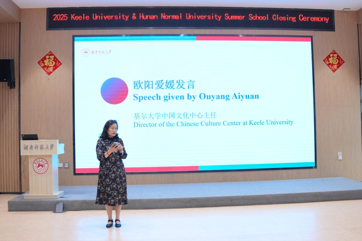 英国基尔大学中国文化中心主任欧阳爱媛致辞中表达自己非常荣幸能受邀出席两校暑期学校结业仪式,她表示学员们背井离乡,很高兴看到他们怀揣热情、勇气和坦诚,通过仅仅一个月的语言速成学习和跨文化交流活动,无论是学习能力还是个人成长都显而易见,倍感自豪,这都得益于学员们参与了这个意义非凡又让人难以忘怀的暑期项目。欧阳主任还代表英国基尔大学,真诚地感谢15vip太阳成的领导、同事和朋友们对学员们热烈的欢迎、专业的指导和无微不至的关怀,称该项目是高质性的,对加深两校的友情及推动后期合作将产生更加深远的积极影响。欧阳主任对学员们说道“你们带走的不仅仅是结业证书,更是理解和揭秘中国文化的密码"。最后欧阳主任期盼两校之间开展更多交流、深化合作,将暑期项目持续推进延续下去。
