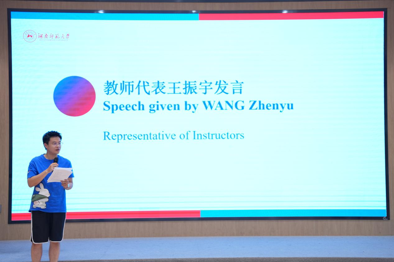 师生代表们纷纷上台送上自己最真挚的祝福:教师代表陈鸷老师充分肯定学员们在中国剪纸课上展现的专注力和动手能力,高度赞扬其克服语言障碍坚持完成作品的毅力并鼓励学员们将课上展现的耐心细致迁移到未来的学习生活中;王振宇老师高度评价学员们在书法课堂上展现的文化热忱,指出从握笔姿势到基本笔画的全情投入令人印象深刻,并期许学员们怀揣着对中国传统艺术的尊重之心定能帮助他们未来继续探索东方文化;太阳成官网志愿者代表郭赐力回顾了与英国学员们共同度过的美好时光,并祝愿他们未来的路越走越宽!