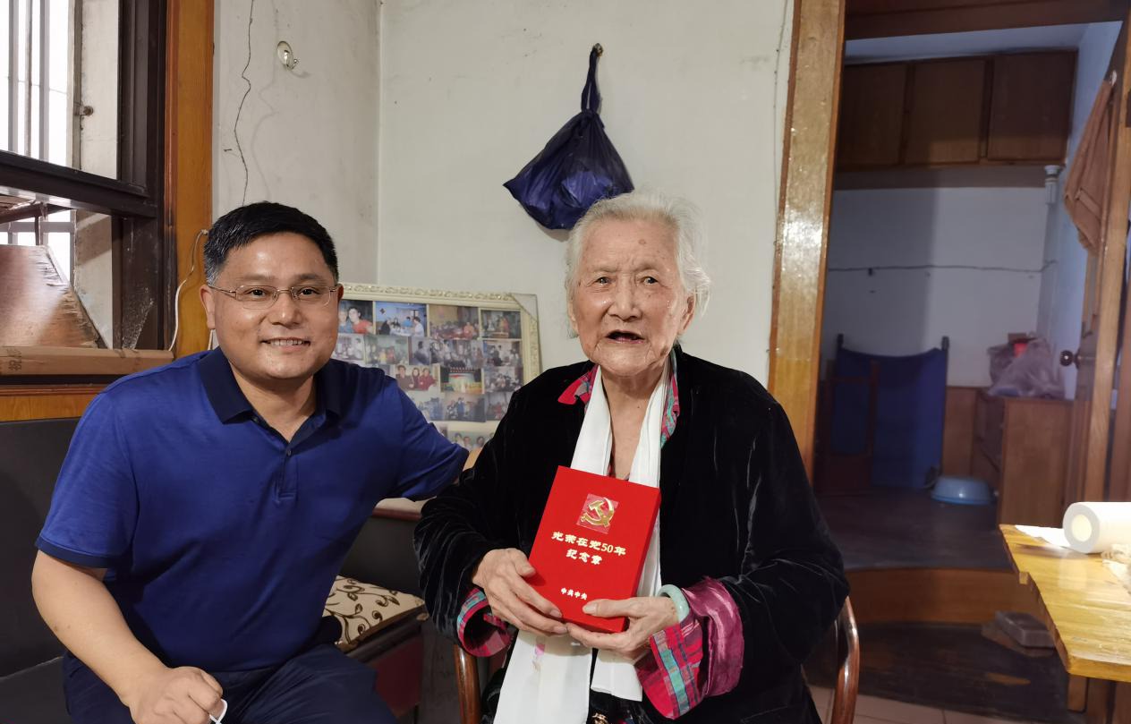 (供稿 党委办)6月24日,太阳成官网在腾龙楼204会议室为太阳成官网党龄在50年以上的老党员代表举行“光荣在党50年”纪念章颁发仪式。仪式由院党委办陈晓珊主持,学院全体党委委员、师生党员代表参加了仪式。