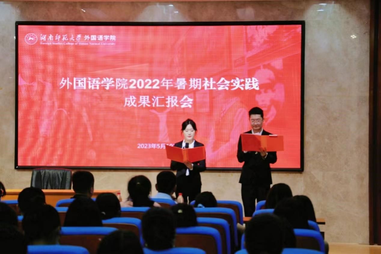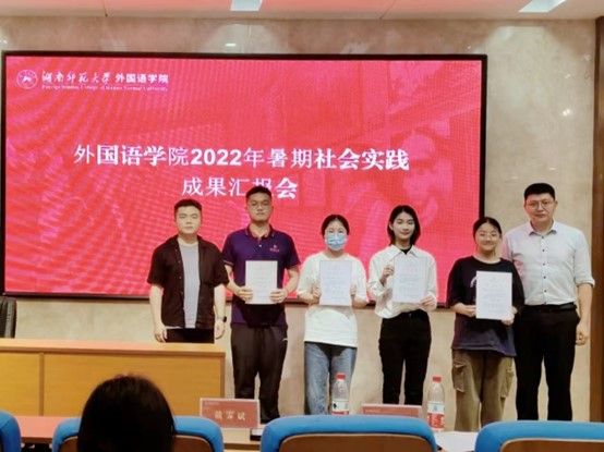李蜜、戴霁斌为获奖队伍颁发奖状。“数言话薪火,红心助乡育”——赴花垣四中实践团获一等奖;“蒲公英”——赴资兴市第三中学暑期社会实践团、“教学相长,助力乡兴”——赴慈利县东岳观镇中学社会实践团、“萤火微微,灼灼之光”——赴张家界市慈利县第四中学暑期社会实践团获二等奖。