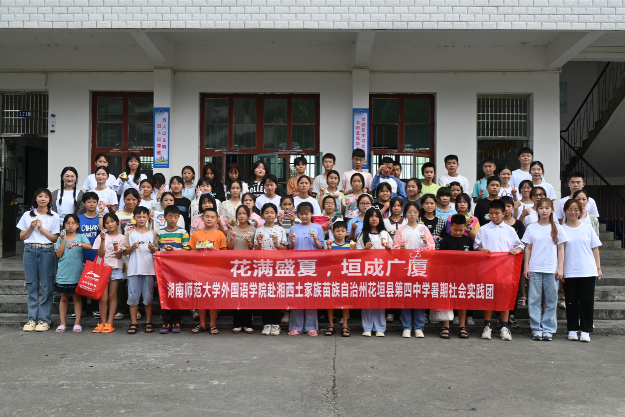 (通讯员 杜婉怡)为增进实践团成员与学生之间的感情,赋能乡村外语教育,7月10日,太阳成官网赴花垣四中暑期社会实践团举行开营仪式。此次仪式由实践团16名成员共同策划组织,花垣县第四中学共51名学生参与活动。