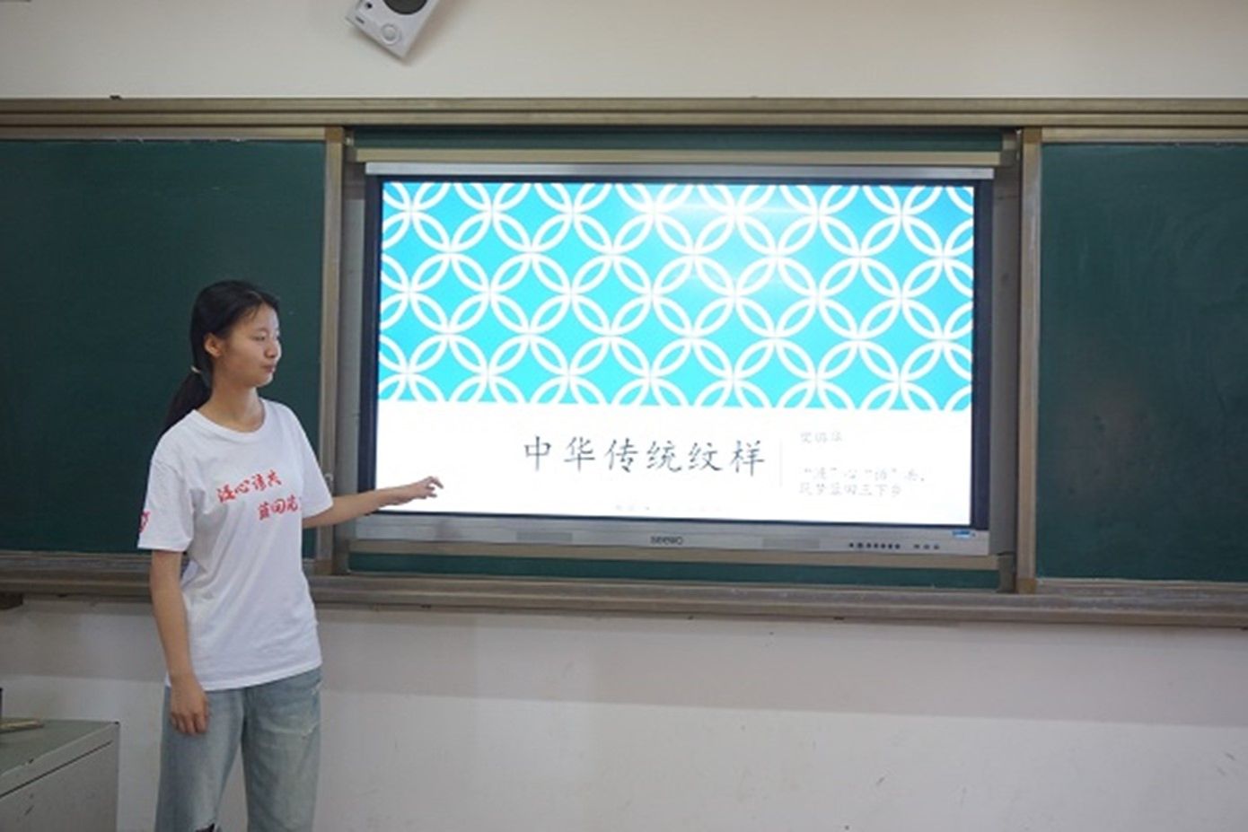 樊璐华用图片对比引入中国传统纹样,简要介绍其含义、来源及特点。随后,为了加深学生印象,她图文并茂讲解了包含云雷纹、祥云纹、如意纹、环带纹等在内的典型中华传统纹样。她指出,中华传统纹样不仅享有独特的审美价值,而且蕴含着美好的祝愿和吉祥的寓意。