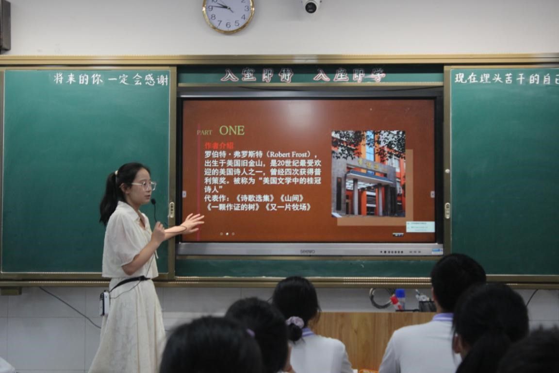 刘靓媛以诗歌《The Road Not Taken》为例,对文学作品中的英语创作进行解读。在理解诗歌大意的基础上,进一步对诗歌进行韵律、时态、结构等细节进行赏析。刘靓媛为学生分析了英语诗歌中富有音乐美的交替押韵诗句以及不断变化的时态所营造出时空交织的审美效果,最后经由结构的梳理挖掘诗人创作的心路历程。此模块旨在带领学生探究英语创作的独特之处,感受英语的表达艺术。