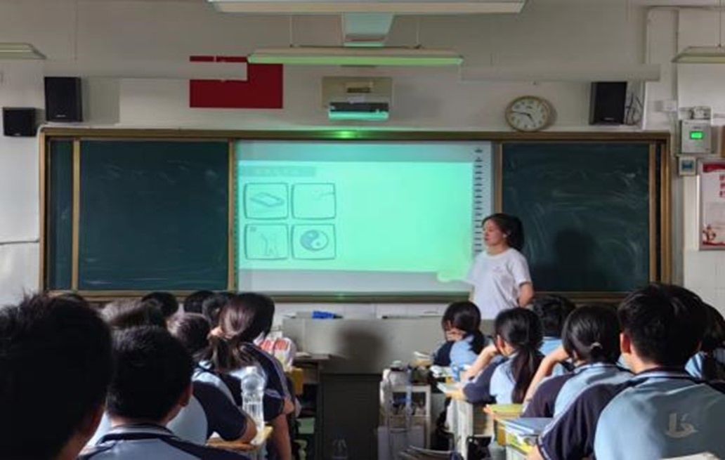 彭璐首先向学生们提出“是否学习过古汉字”这一问题,导入课程。她利用多媒体课件,结合图片和视频,向学生们生动明了地介绍了古汉字的由来和演变,并且将其与现代简体汉字进行对比。钟梦媛则向学生们介绍中国民间剪纸艺术和中国结的寓意,展示了优秀民间剪纸和中国结作品,并带领学生们学习剪纸和编制中国结。在课堂结尾,钟梦媛和彭璐以先前学习过的古汉字为例,指导同学们进行“看图猜字”,借此巩固课堂学习成果。