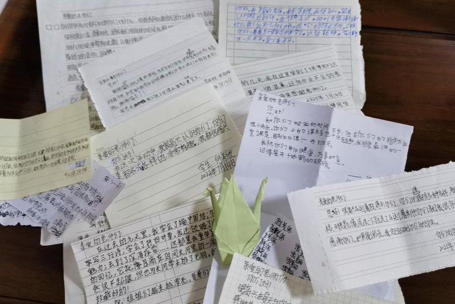 活动伊始,实践团成员莫若男选取一封10岁女孩写给老师的信,为同学们讲解写信的格式,引导学生感受信件的情感力量。在了解写作要求后,同学们将自己对老师们诚挚的感激之情通过笔尖化成纸上娟秀的字迹藏于信封里。书信长短不一,但字里行间深藏着浓浓的尊师意,谢师情。在书信里,同学们打开了心中最隐秘的那扇门,在这个只属于彼此的世界里,向共处十几天的老师们展示了平时“藏”起来的自己和对老师想说的话。无论是师生难忘的回忆,还是对老师真挚的祝福,无论是自己迷茫的现状,还是对未来遥远的理想,同学们都在最原始的书信里毫无顾忌地一一述说。