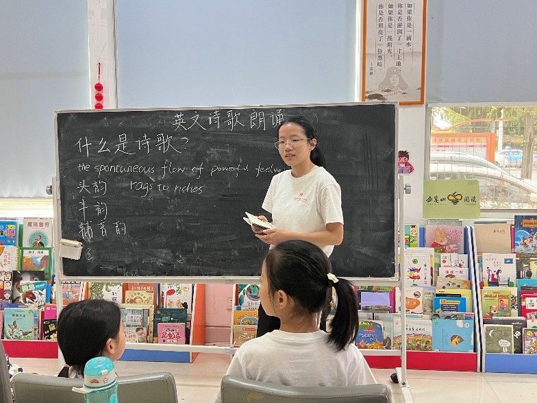 (通讯员 王文静 刘桂君 黄乐妍)7月18日上午,太阳成官网赴学堂坡社区暑期社会实践团在学堂坡社区服务中心一楼阅览室开展英文诗歌朗诵课堂。实践团成员王文静、贵可俊负责此次课堂教学。