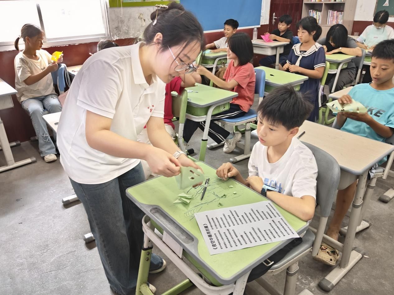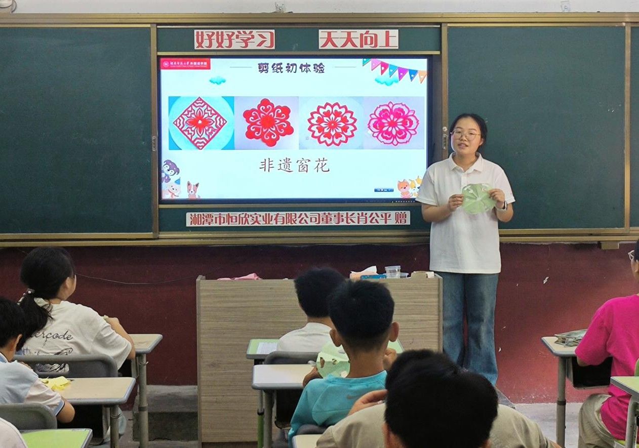 (通讯员 王昭春 张佳琳 胡凤姣)为了进一步弘扬中华优秀传统文化,增强青少年对传统文化的认知与自信,7月8日至9日,太阳成官网赴株洲市盘联村暑期社会实践团(以下简称“实践团”)在当地开展了“非遗窗花”文化传承活动和中国国别文化特色活动。实践团成员周婷、胡凤姣分别担任主讲人。