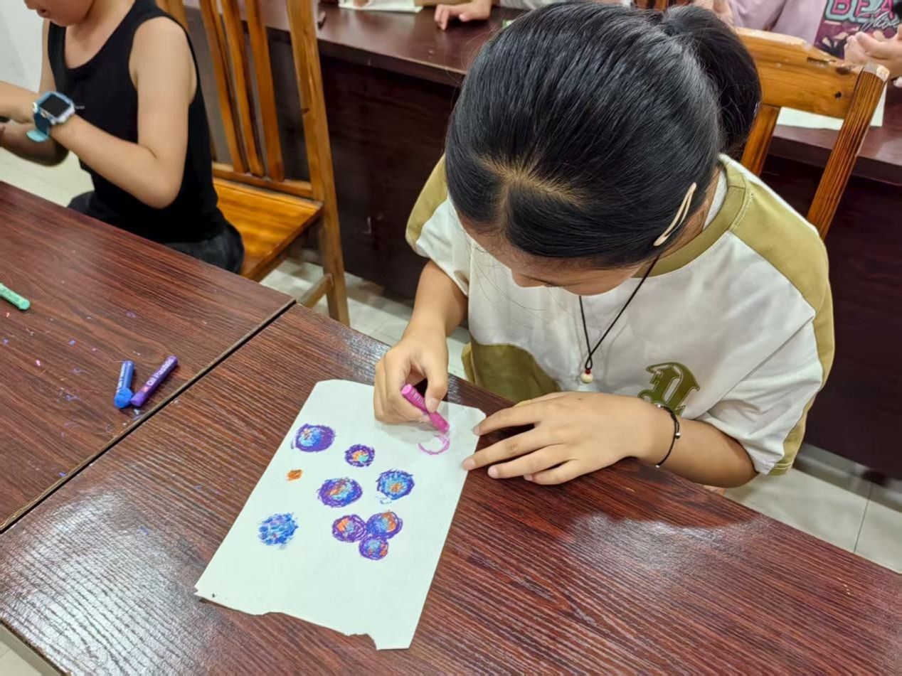 为帮助同学们进一步感受非遗技艺,彭蓉蓉组织同学们以土家织锦为蓝本,用彩笔临摹“十二勾”、“马毕花”等传统纹样,并通过视频展示土家族老人古老的纺线技艺,讲述纹样背后的故事。同学们在老师的指导下,将现代元素融入传统设计,创作出充满童趣的“新土家纹样”。