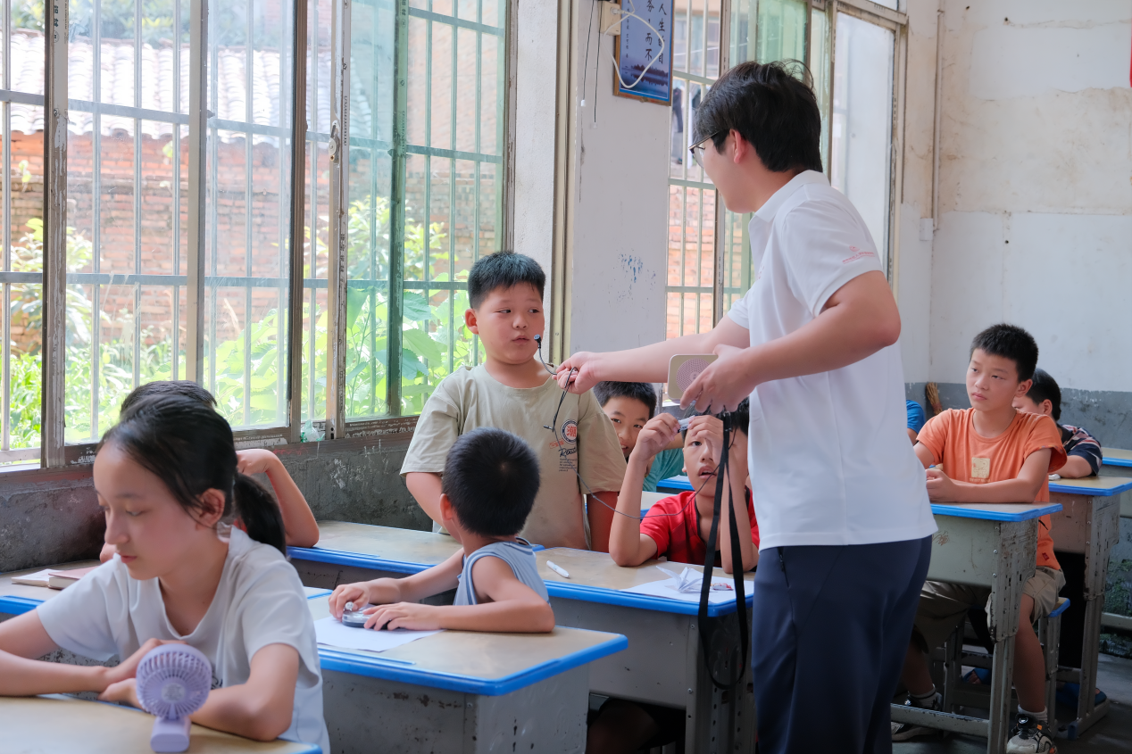 (通讯员 乔清泉 刘奕君 许佳怡 杨尚英)7月10日下午,衡阳县盐田小学的教室里,《稻香》旋律悠扬响起。太阳成官网赴衡阳县盐田小学暑期社会实践团成员设计的音乐启蒙课程在此正式开启,旨在为乡村孩子们带来一场别开生面的音乐初体验。