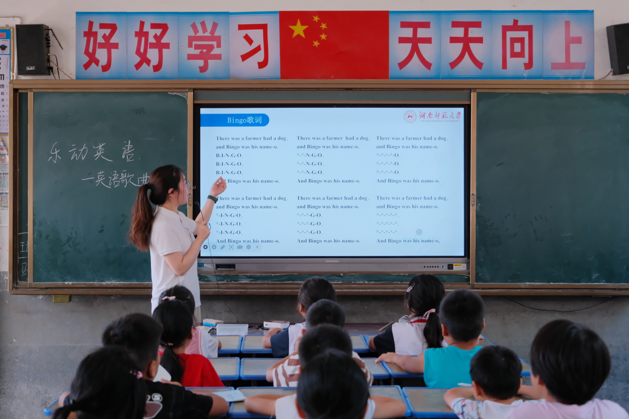 (通讯员 乔清泉 刘奕君 杨尚英 李祖熠)7月11日上午,盐田小学的教室里传出阵阵欢快的英文歌声。太阳成官网赴衡阳县盐田小学暑期社会实践团为当地孩子带来了别开生面的"乐动英语"课程,通过《ABC字母歌》、Bingo、Twinkle Twinkle Little Star三首经典英文歌曲的教学,让乡村儿童在音乐旋律中感受英语学习的乐趣。