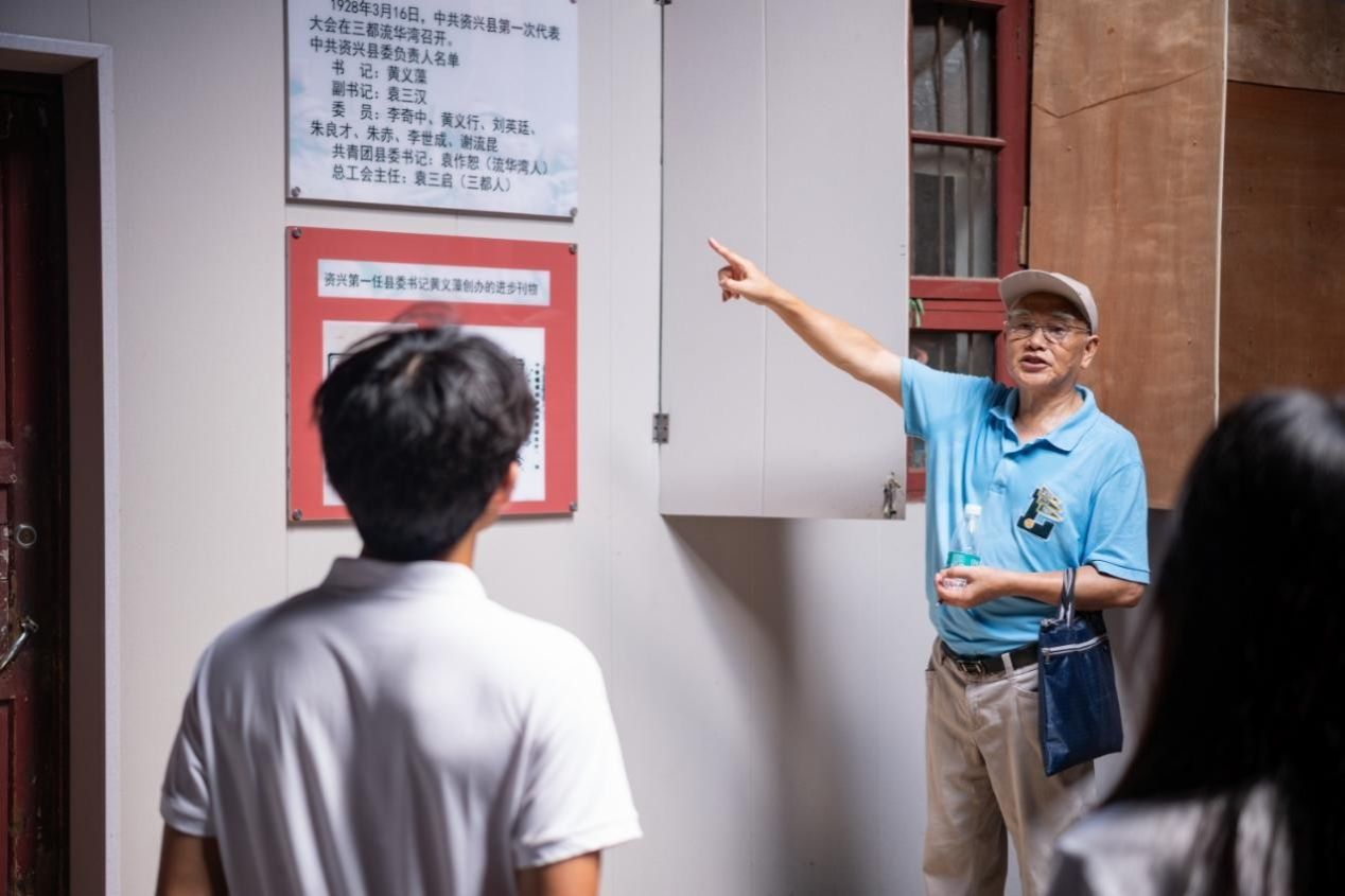 随后,在曹含勇的带领下,实践团成员们实地探访了位于流华湾的资兴县苏维埃政府旧址。在革命旧址,曹含勇详细讲解了资兴苏维埃政权建立的艰辛历程,鼓励成员们厚植家国情怀,深入挖掘并讲好资兴故事,传承红色血脉。讲解结束后,实践团成员们围绕“如何讲好资兴红色故事”的主题,结合所见所闻,展开了讨论,积极为传承红色文化建言献策。