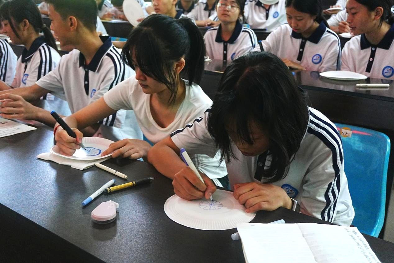 美育课程着重培养学生的动手能力。在实践团成员的指导下,学生亲自动手,学习瑶族非遗剪纸、绘制传统青花瓷纹样,在沉浸式学习中感受传统工艺魅力。