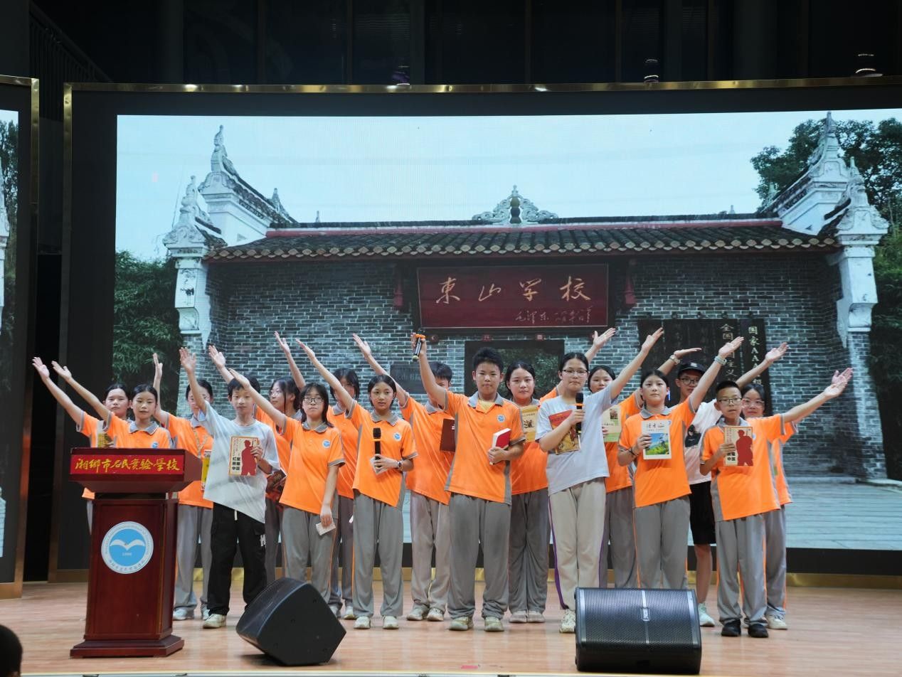 活动伊始,谭熙云等湘乡本地女英雄的革命故事被娓娓道来,细腻讲述让历史人物“活”了起来;随后,学生们用英语演绎的红色小剧场《The Spark of Revolution》惊艳登场——以东山书院为背景,少年们用精彩表演,再现了革命先辈追求真理的场景;终场前的集体宣誓环节,“以青春之名,担时代之责”的誓言,将现场气氛推向顶点。