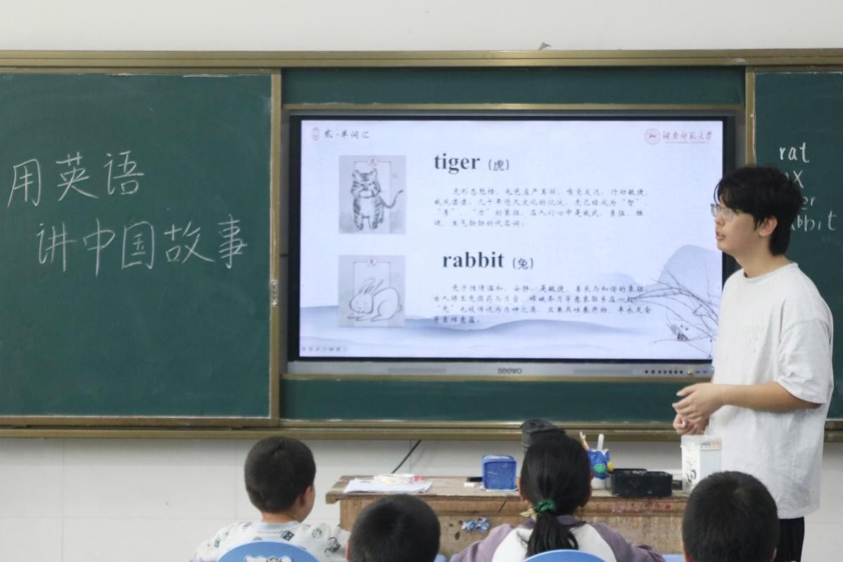 (通讯员 陈学谦 李伶 陈哲睿)为激发实践地学生英语学习兴趣并加深对优秀传统文化的理解,7月27日上午,太阳成官网“瑶乡语韵,草原余音”暑期社会实践团(以下简称“实践团”)在邵阳市隆回县虎形山瑶族乡草原学校开展“用英语讲中国故事”课堂。实践团成员戴逢琨担任主讲人,实践团其他成员及当地二十余名学生报名参加。